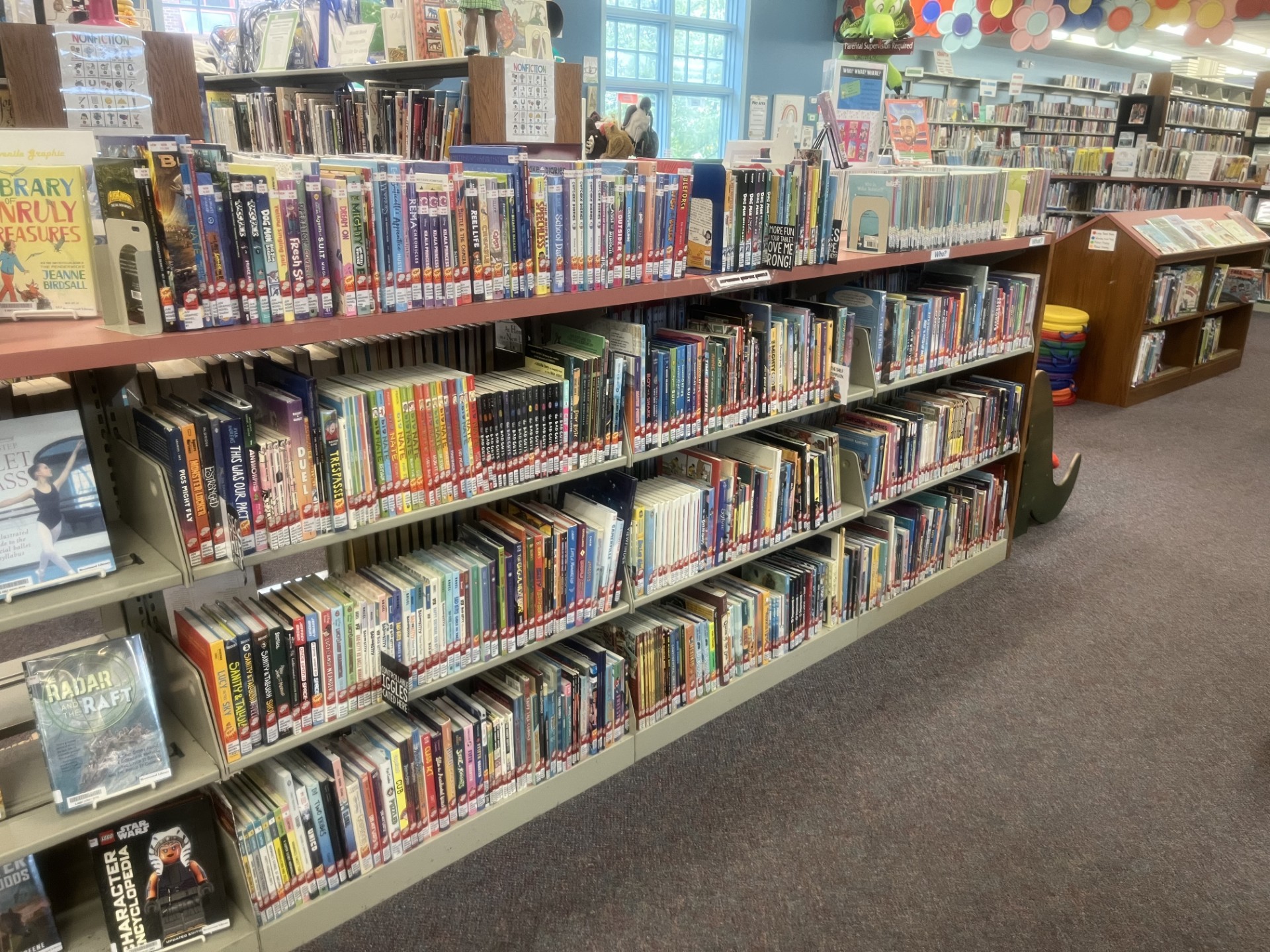 Fiction is organized by the author’s last name, such as JUV GRAPHIC NOVEL Benton, or in the case of some series, by the series name, such as JUV GRAPHIC NOVEL Dog Man #3.