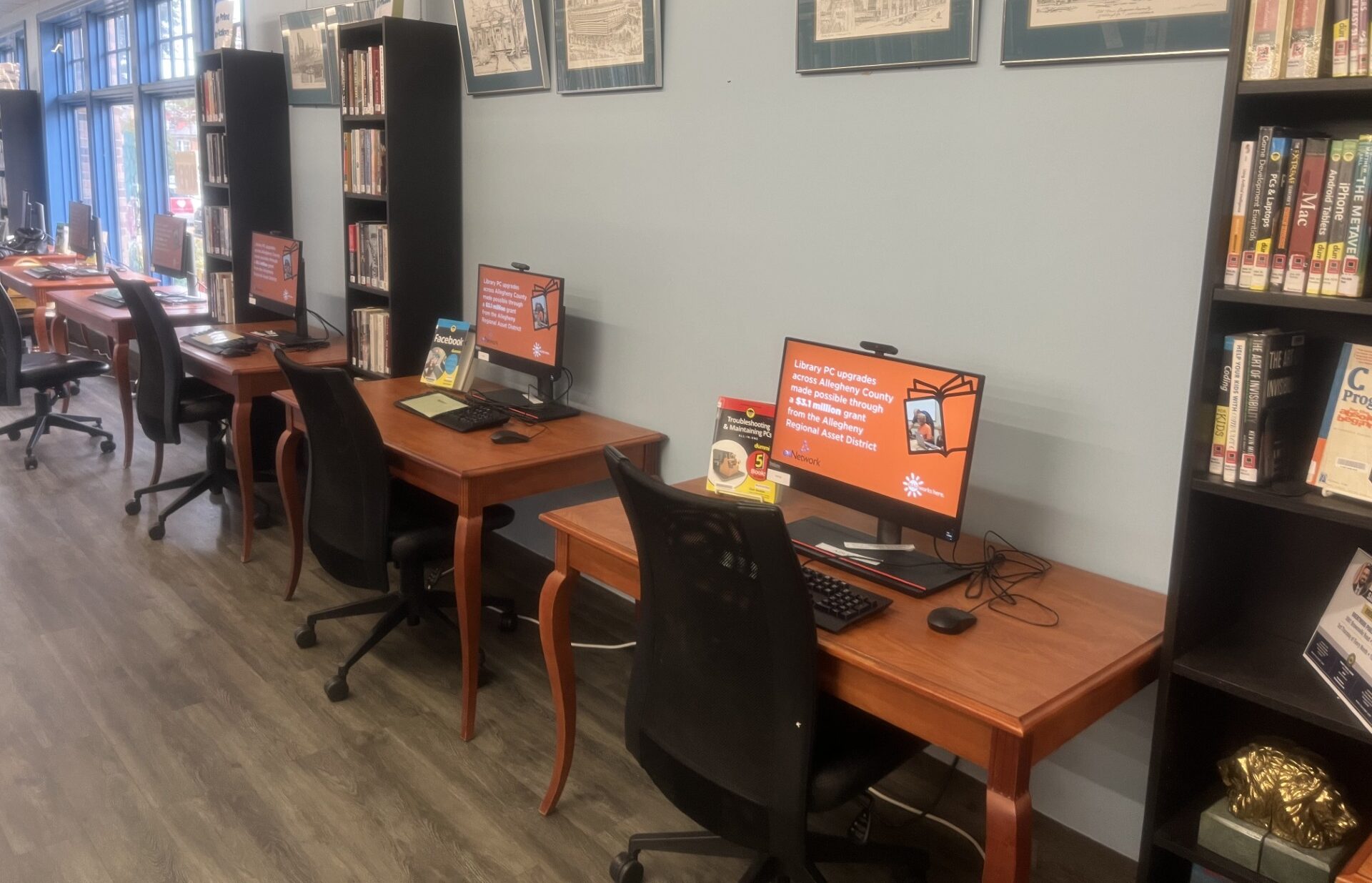Brentwood Library has 7 All Ages computers and 7 Adult Use computers available for patrons to use for FREE with a library card or guest pass. We also have laptops available for patron use and an AWE computer for our littlest patrons to enjoy a digital learning opportunity.