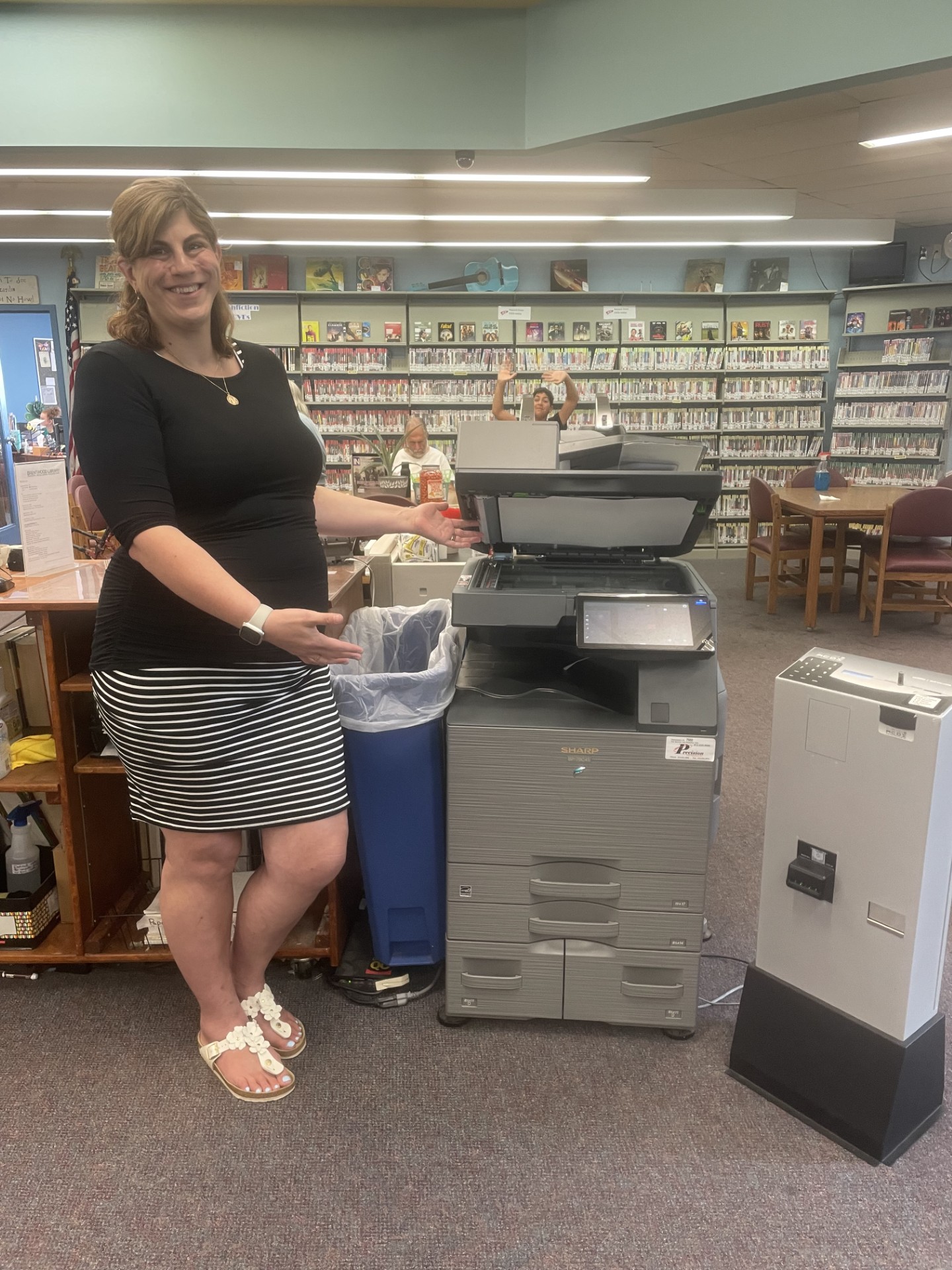 Hannah (and Sam) showing our print/copy/fax/scan tech.